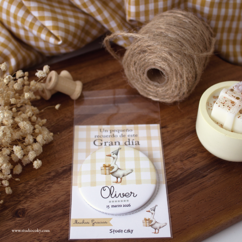Abridor magnético personalizado con diseño exclusivo Goose, perfecto para regalos memorables en bautizos, cumpleaños y celebraciones especiales. Combina funcionalidad práctica con estética moderna: abre botellas con facilidad mientras se adhiere a cualquier superficie metálica gracias a su potente imán integrado. Personaliza el dibujo según tu preferencia para crear un regalo único y significativo. Ideal para obsequios corporativos, detalles de boda o presentes que dejan huella. Acabado premium que refleja la calidad de Coky Studio.