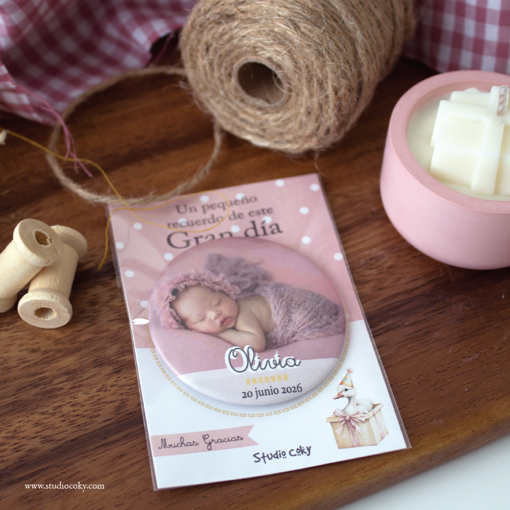 Abridor-imán personalizado de nuestra colección Gosse, este diseño con fotografía es ideal para atesorar ese pequeño y señalado día de celebración de vuestro bebé