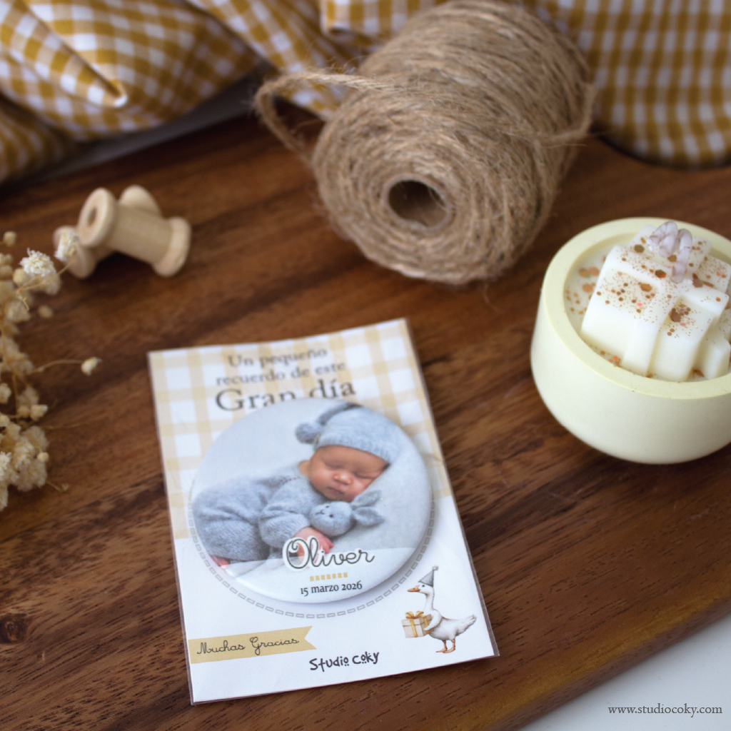 Imán personalizado de nuestra colección Gosse, este diseño con fotografía, sorprenderá a tus invitados, y no quedara olvidado en un cajón.
